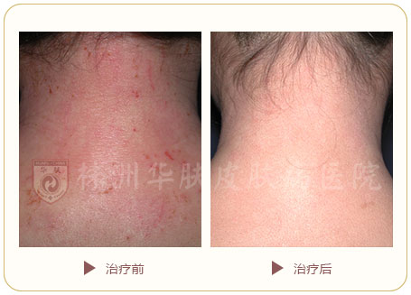 治疗效果:2个疗程治疗后取得惊人效果,皮肤瘙痒症状消失,颈部皮肤完全修复。